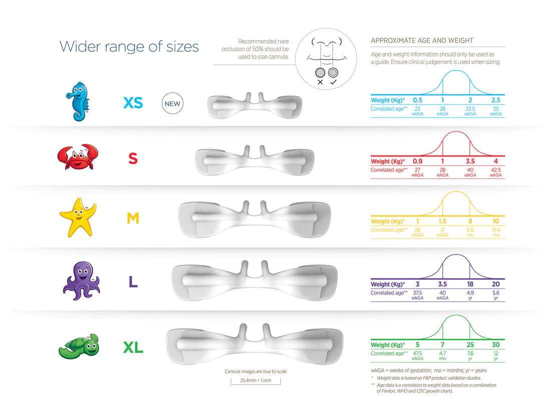Optiflow Junior 2, en küçük hastalara bile solunum desteği sağlamak için geniş akış aralıklarına sahip beş farklı kanül boyutu sunar.